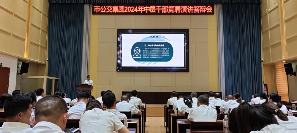 為選拔優(yōu)秀人才,增加中層干部隊(duì)伍活力,促進(jìn)企業(yè)可持續(xù)發(fā)展,6月25日,市公交集團(tuán)召開(kāi)了中層干部競(jìng)聘演講答辯會(huì)。